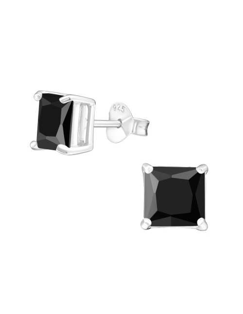 Aros de Plata 6Mm Square CZ Jet