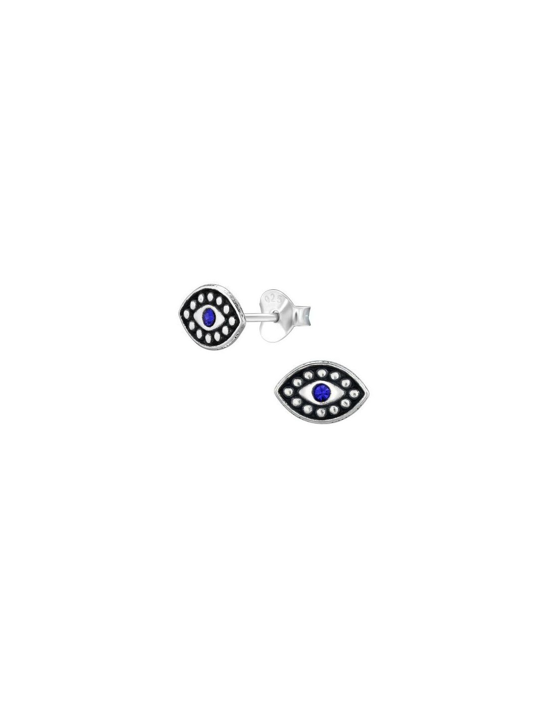 Aros de Plata Evil Eye Sapphire 8 mm x 6 mm