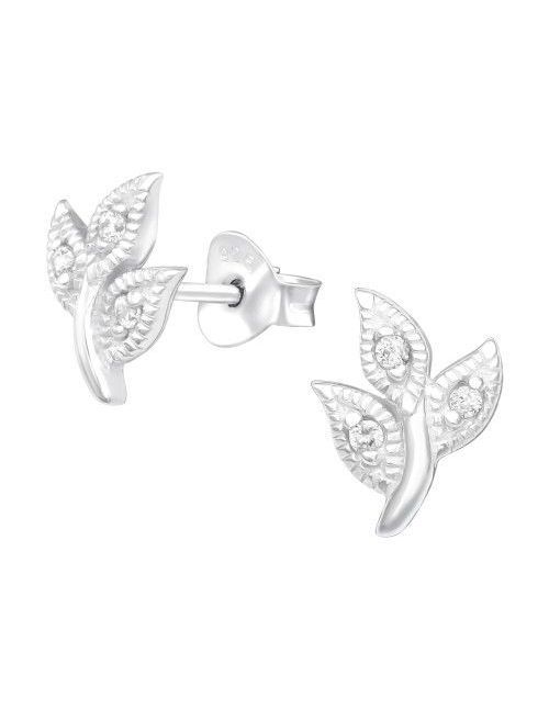 Aros de Plata Leaves Cubic Zirconia 7 mm x 9 mm