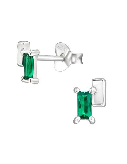 Aros de Plata 6Mm Baguette CZ Medium Green 5 mm x 6 mm