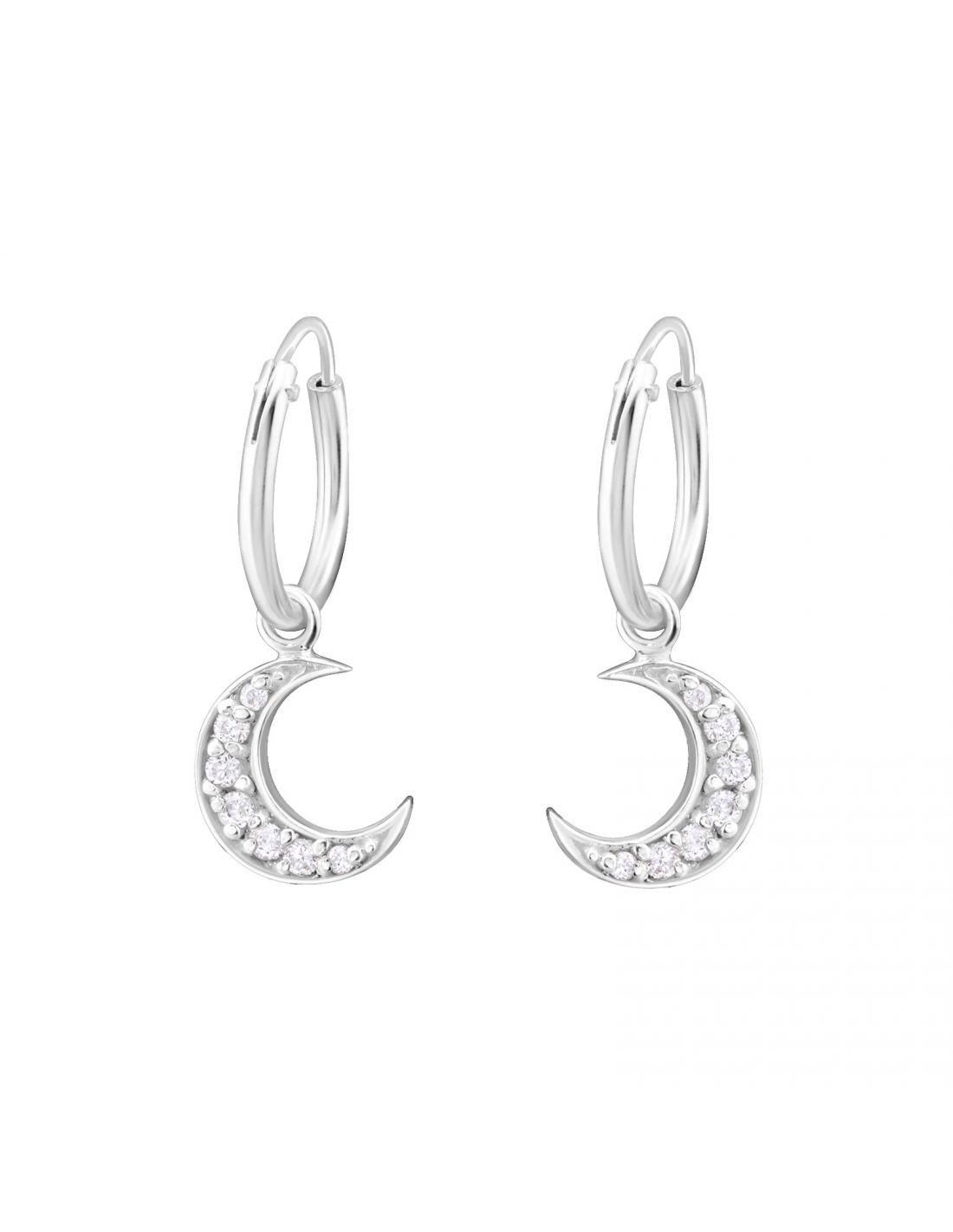 - Argollas de plata de lunas con cristales 20mm