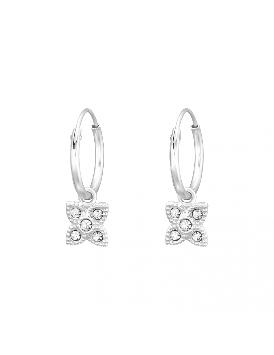- Argollas de plata de flores con cristales 18mm