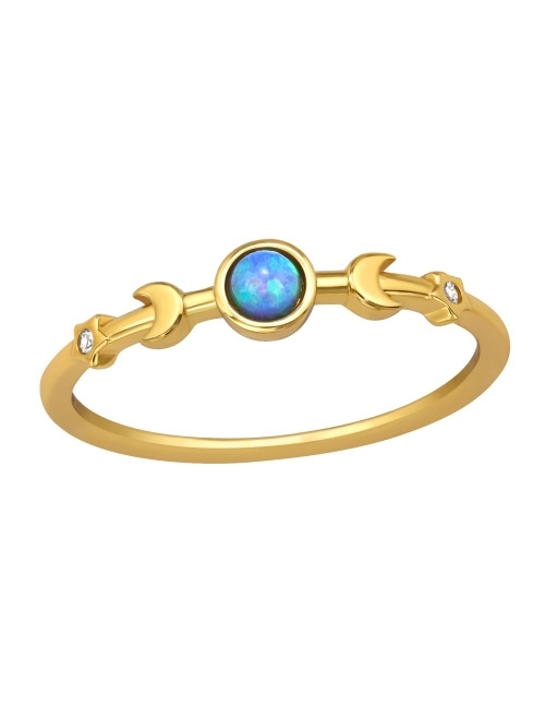 Anillo de plata 925 de luna y estrellas con circones y ópalo sintético
