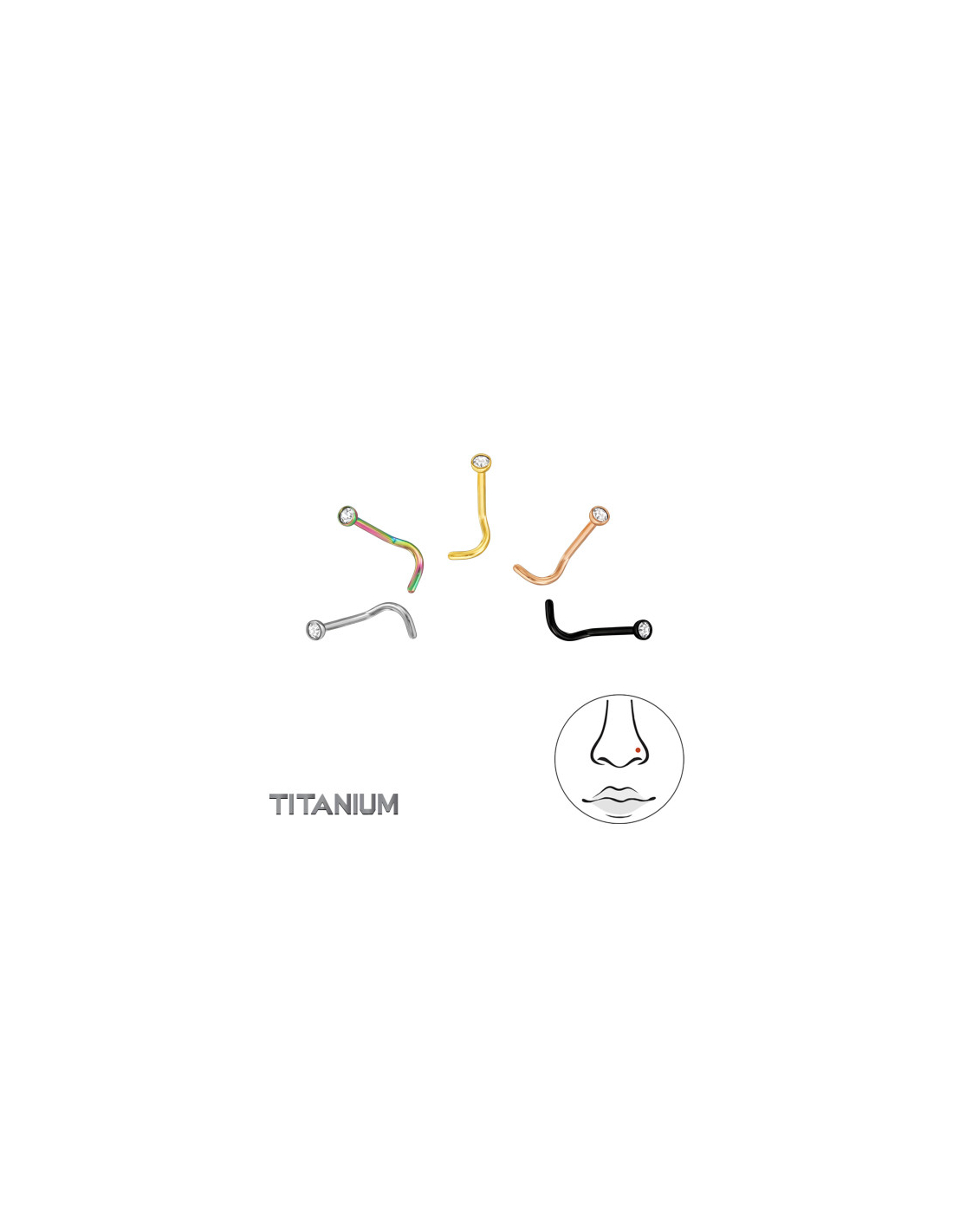 Piercing Nariz 0.8Mm (20G) Mix Color X5 2Mm Crystal Titanium